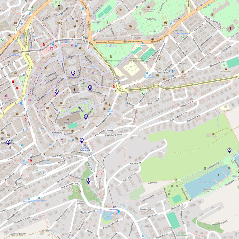 Entdecke dabei die Altstadt St. Gallens, die Mülenenschlucht sowie die Drei Weieren und erfahre Wissenswertes über die Stadt und ihren Klostergründer: den Heiligen Gallus.